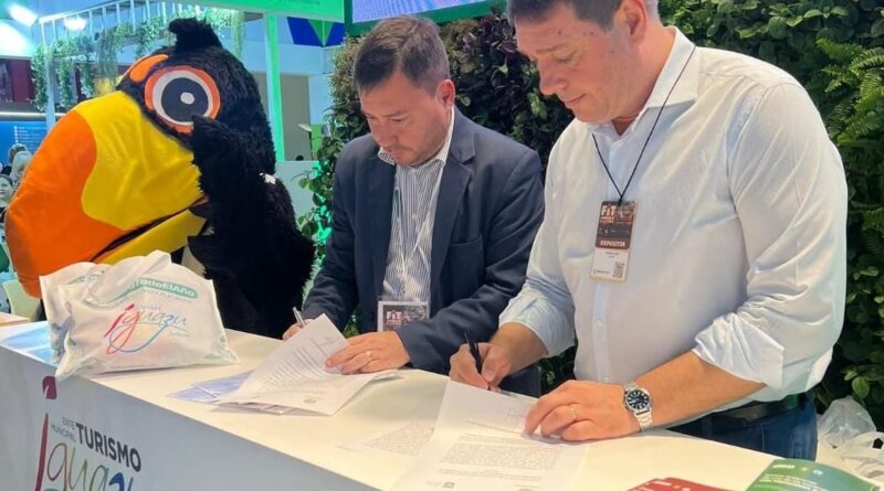 Segundo día de FIT con firma de convenio en el stand de Iguazú . En la tarde de domingo durante