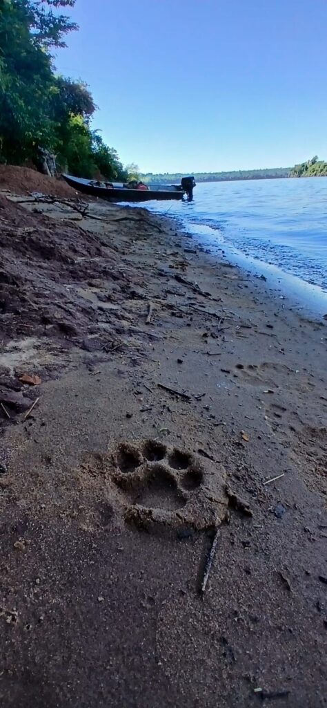 Posteriormente, los guardaparques desembarcaron en el sitio del avistaje, donde se procedió a la toma del punto GPS y al registro fotográfico de las huellas, a fin de incorporarlas al Sistema de Información de Biodiversidad de la Administración de Parques Nacionales .