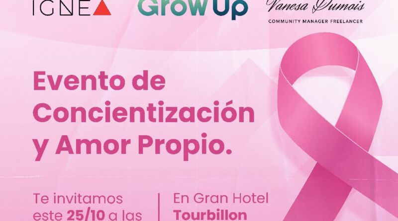 Salud Mes Rosa 22 octubre, 2025 l0051173 En prevención de la lucha contra el cáncer de mama, este sábado 25 de octubre se llevara a cabo en el hotel Tourbillon, una charla de prevención a cargo de GrowUP, quienes ofrecerán una charla de concientización y amor propio Compartir a tus amigos